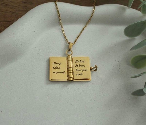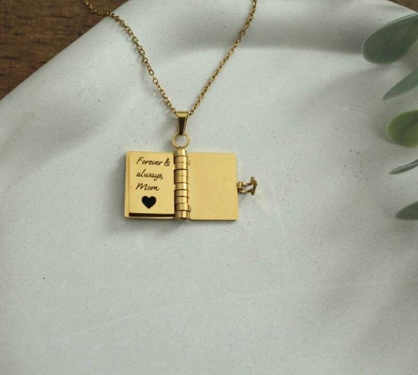 This book-style locket opens to reveal engraved messages, making it a meaningful gift for daughters, mothers, partners, and loved ones.