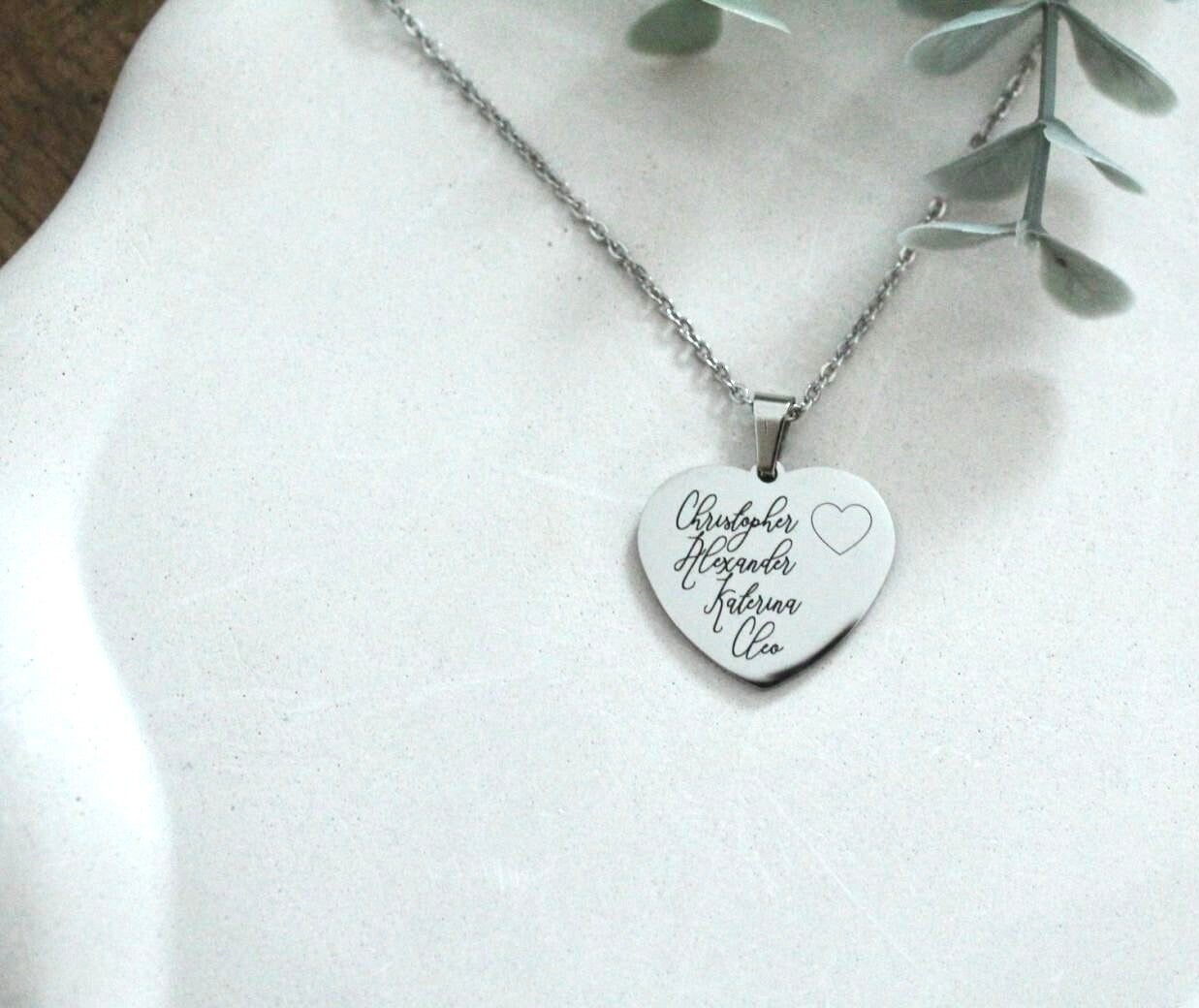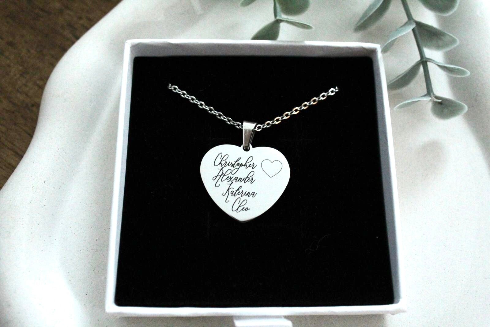 This personalized heart necklace is engraved with the names that mean the most to you. Whether it’s children, parents, grandchildren, pets, or someone you hold close, this necklace is a meaningful treasure to wear every day.
