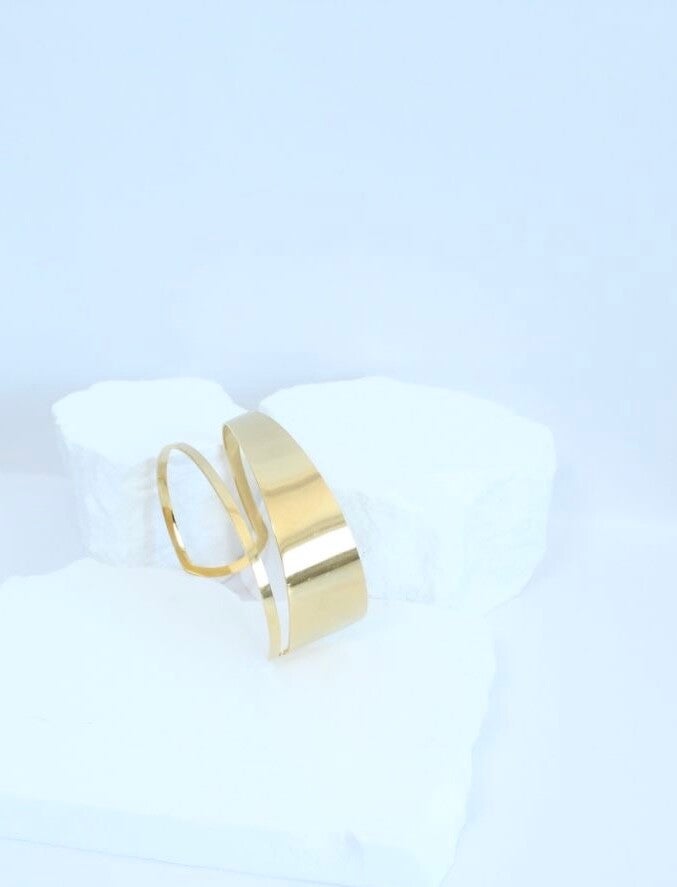A timeless, minimalist gold cuff bracelet that adds a touch of understated elegance.