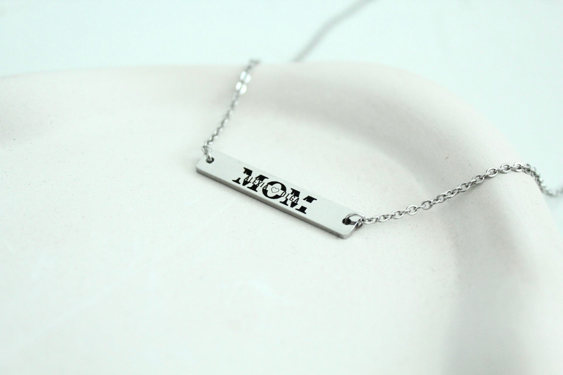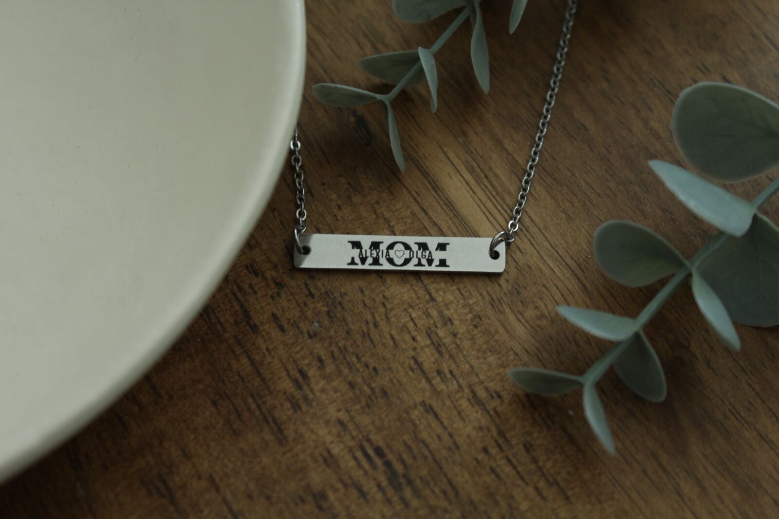 Personalized MOM Bar Necklace • Engraved Name Kids Necklace • Mother’s Day Gift • Stainless Steel