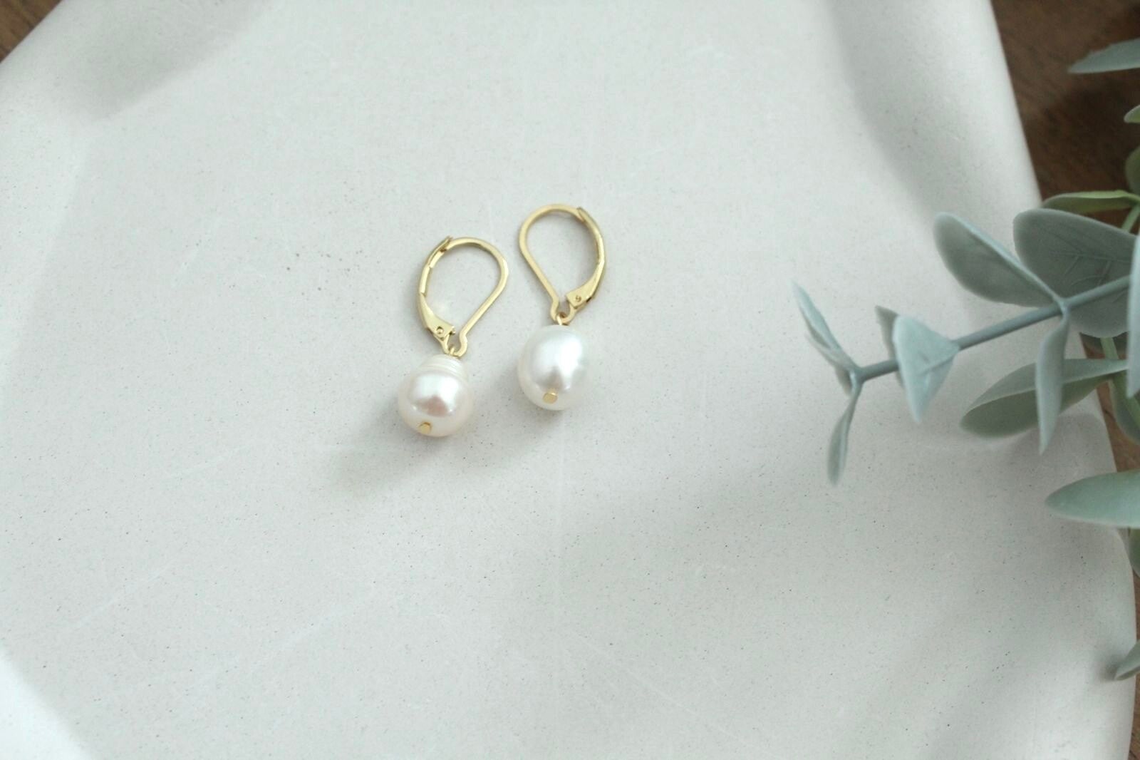 Freshwater Pearl Drop Earrings • Minimal Gold Dangle Earrings