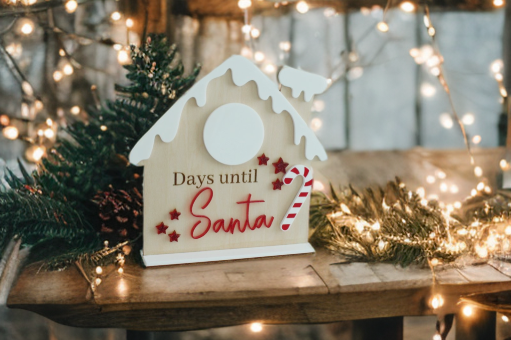 Create excitement every morning with this adorable “Days Until Santa” wooden countdown sign. Perfect for families with kids, Christmas lovers, and cozy holiday home décor. Simply write the number of days on the round white board using any dry-erase marker — wipe and update daily!